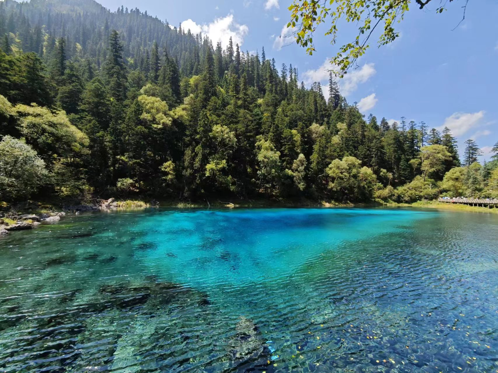 水特别好看,像蓝宝石一样!尤其要夸一下景区的管理,非常多的观光车,早上 8 点到大门口就已经排了非常长的队伍了,然而没等 5 分钟就成功坐上观光车了。景区非常大,但由于交通特别方便,我们除了原始森林,基本都逛完了所有景点。